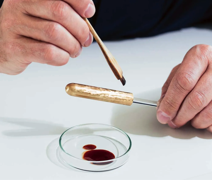 La fascinante naturaleza de UrushiEl término japonés "Urushi" describe tanto el material —a menudo también llamado laca japonesa o laca china— como la técnica empleada para procesarlo y aplicarlo. En la región de Asia Oriental, en particular en Japón, China y Corea, el Urushi tiene una tradición milenaria que aún se conserva como patrimonio cultural. Este material es extremadamente valioso, ya que la materia prima natural —la savia del árbol de la laca de Asia Oriental— solo se puede extraer a mano y en cantidades muy pequeñas. Tradicionalmente, se recubren con Urushi objetos cotidianos exclusivos, como cuencos, platos, palillos o pequeños estuches, donde la laca actúa como capa protectora y adorno. Los materiales principales suelen ser madera, bambú y metal, pero también se pueden recubrir textiles y cuero. | ||||