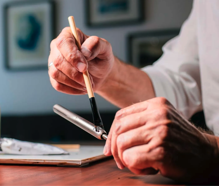 | El material dicta el tiempoEn manos de Manfred Schmid, el procesamiento y el acabado de cada pluma estilográfica requieren varios meses. Esto se debe a que suelen transcurrir varios días de secado entre cada paso del trabajo: la aplicación, el lijado y el pulido de las capas de laca. La duración de este proceso nunca se puede predecir con exactitud. El material dicta el tiempo. Este ebanista de profesión es uno de los pocos maestros europeos del Urushi que dominan el manejo de este material poco convencional. | |||
